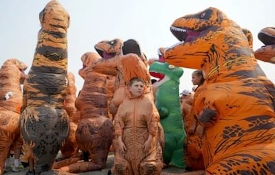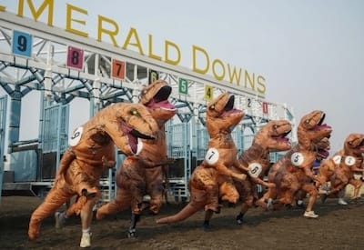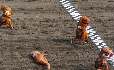 🏁 Over 200 participants donned inflatable Tyrannosaurus rex costumes and raced at the Emerald Downs track. The race began in 2017 as a team-building exercise for a pest control company.