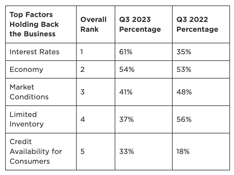 Overall dealer sentiment held mostly steady in Q3 2023 compared to Q2, though high interest rates and economic concerns continue to weigh heavily on the market. Franchised dealer optimism is on the rise, while independents are a bit more skeptical.