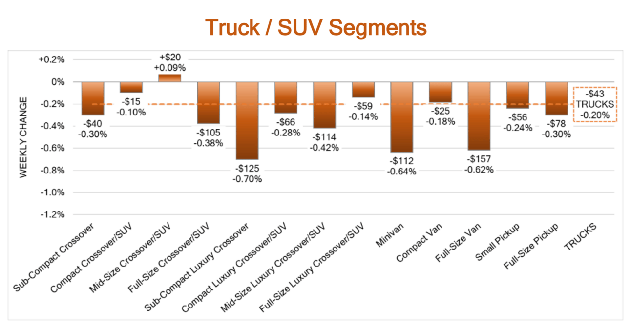 Wholesale Prices: Overall, the wholesale market is depreciating across all segments, but the rate of decline is below what is typical for the time of year.