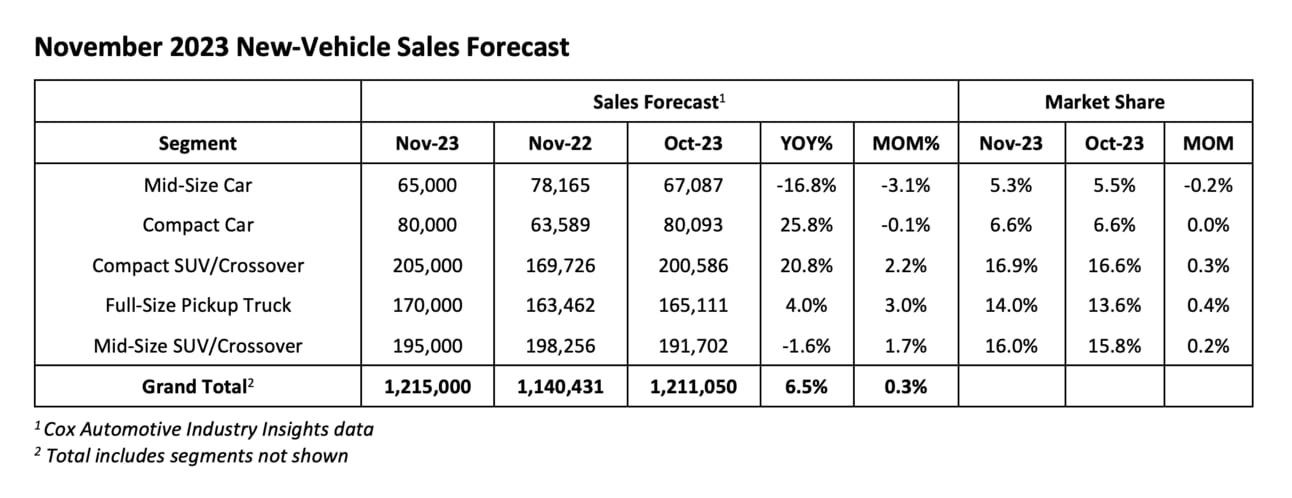 ⬆️ Sales Volume Increase: November new-vehicle sales are projected to see a 6.5% rise compared to the same period last year.