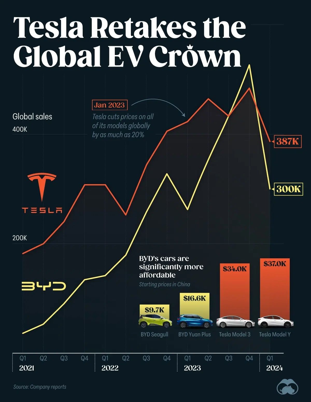This downturn has sparked an aggressive price war, with BYD slashing prices in response to Tesla's cuts, making the competition even hotter.