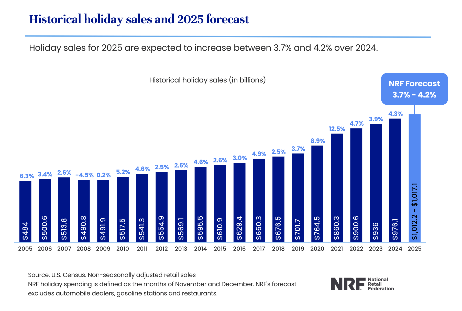 Holiday sales are expected to cross the one trillion dollar mark for the first time.