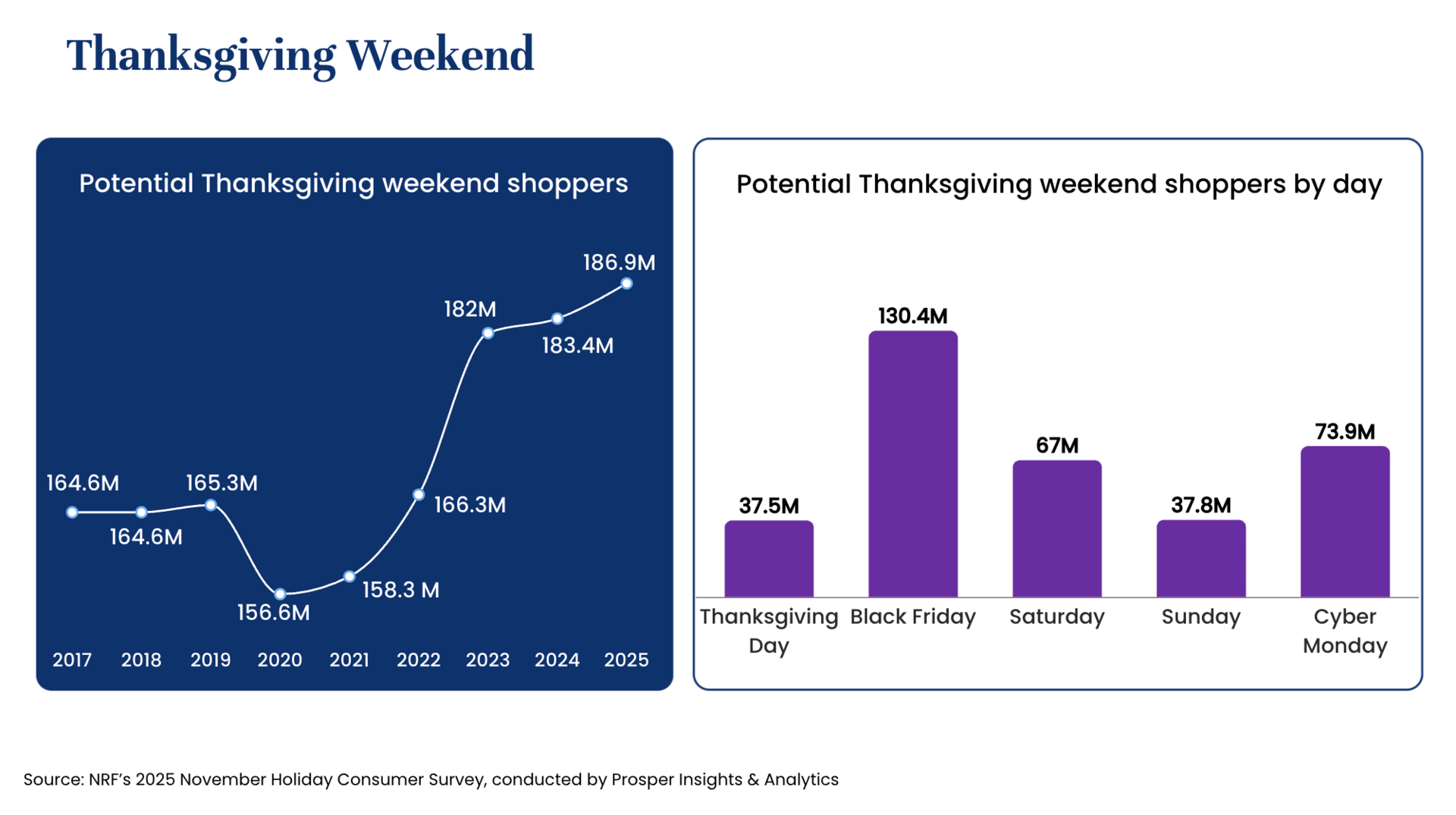 Get ready. About 130M people are expected to hit stores (and screens) this Black Friday, part of a record 186.9M shoppers expected between Thanksgiving and Cyber Monday.