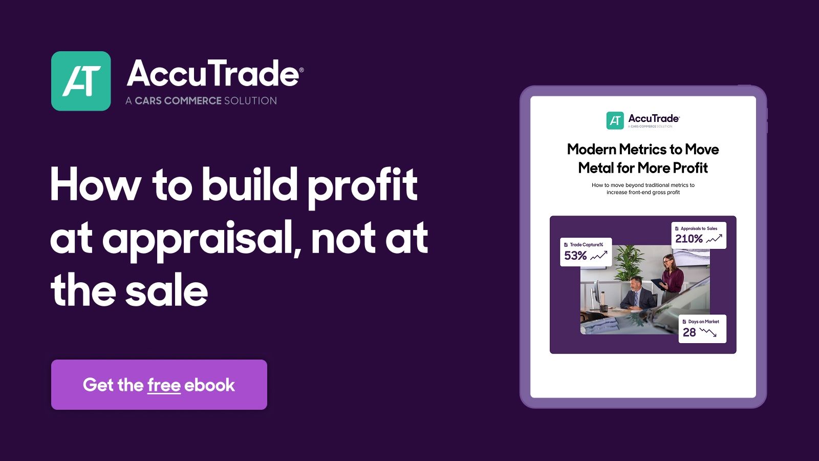 This free ebook breaks down an appraisal-driven strategy built on four modern metrics so you can source the right vehicles, reduce risk, and protect front-end gross from the start.