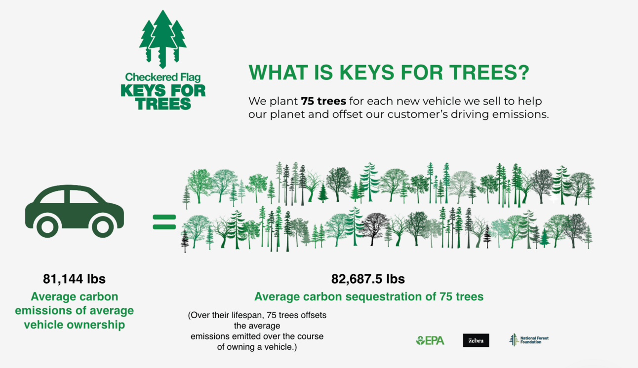 At Checkered Flag Auto Group, driving off the lot in a new car now means more than just enjoying a fresh ride—it also means contributing to a greener planet.