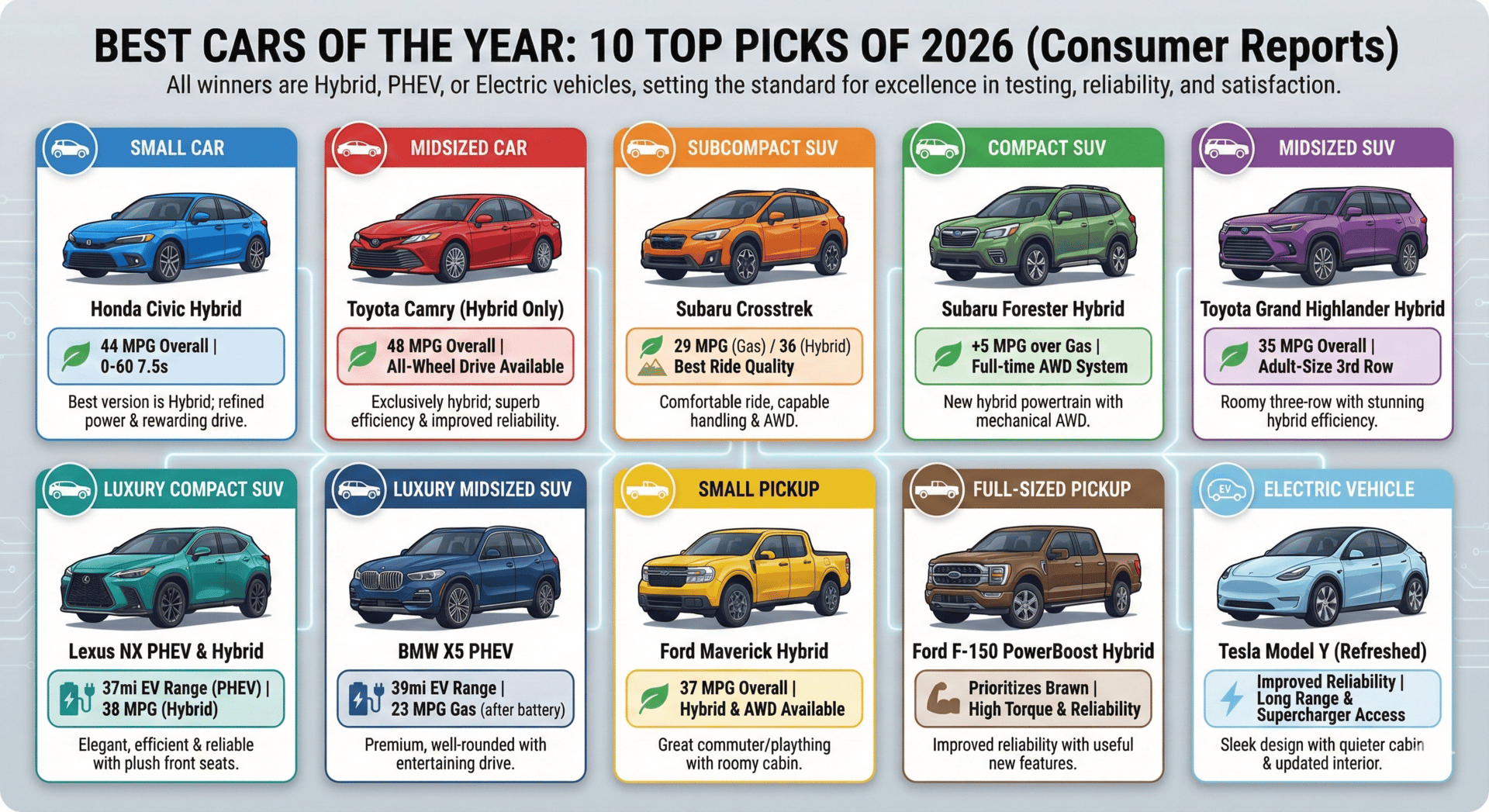 The 2026 Consumer Reports Top Picks are out, and for the first time, every single winner is either hybrid or fully electric.