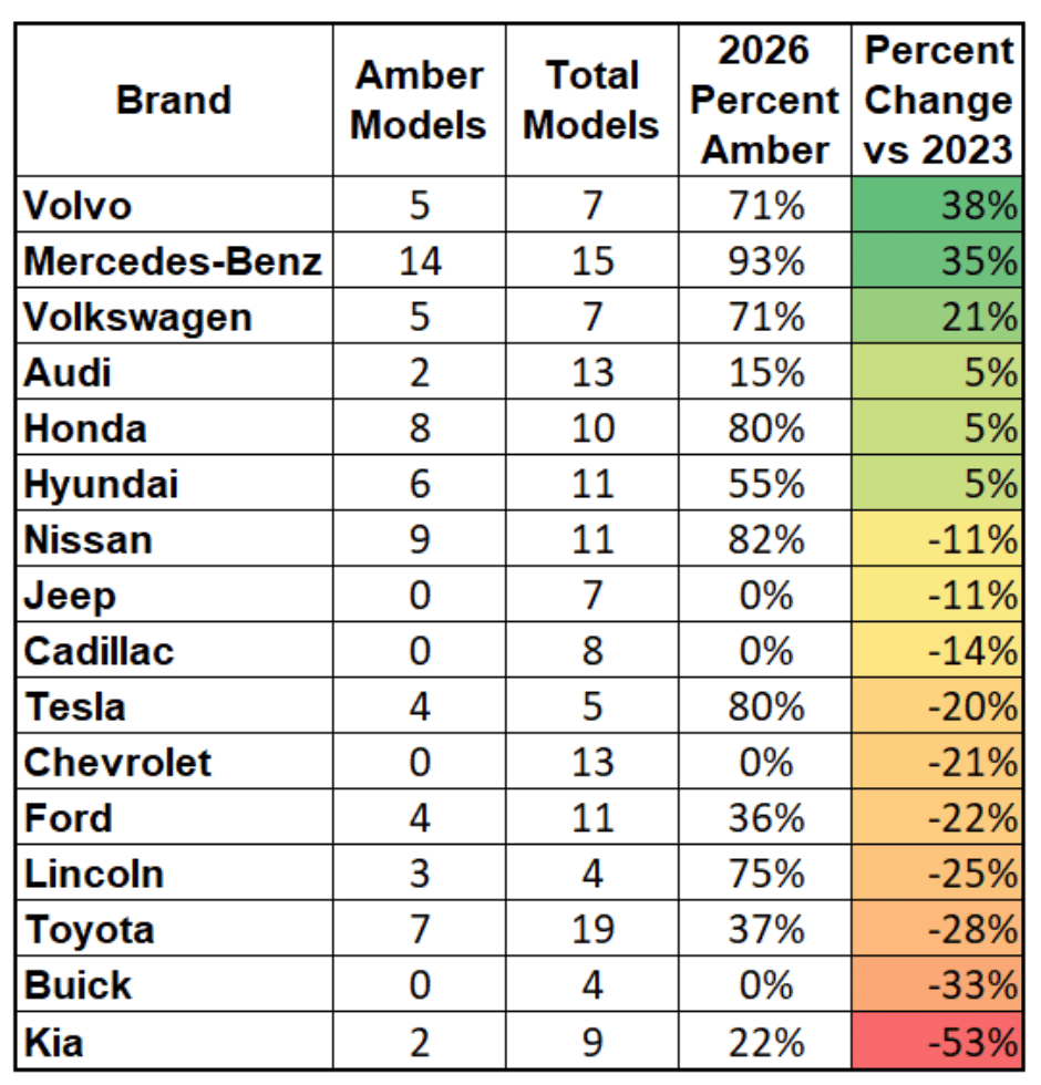 They’re easier to see, better at preventing crashes, and already required in most of the world. But in North America? Only 43% of 2026 models use them. That’s down from 48% in 2023.