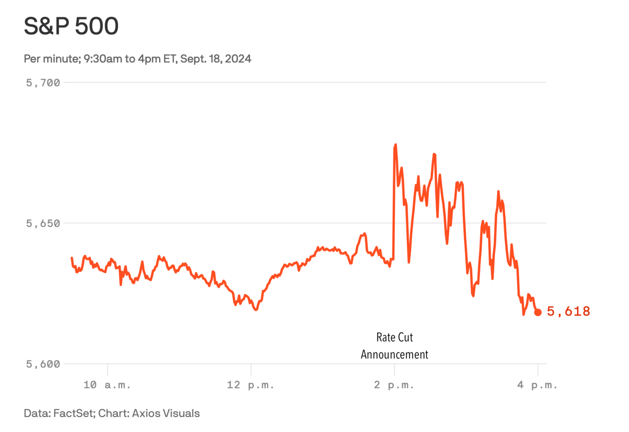 The S&P 500 hit an all-time high of 5,678 right after the Fed’s half-point rate cut announcement on Wednesday, but the excitement was short-lived as the market seesawed before closing slightly lower.